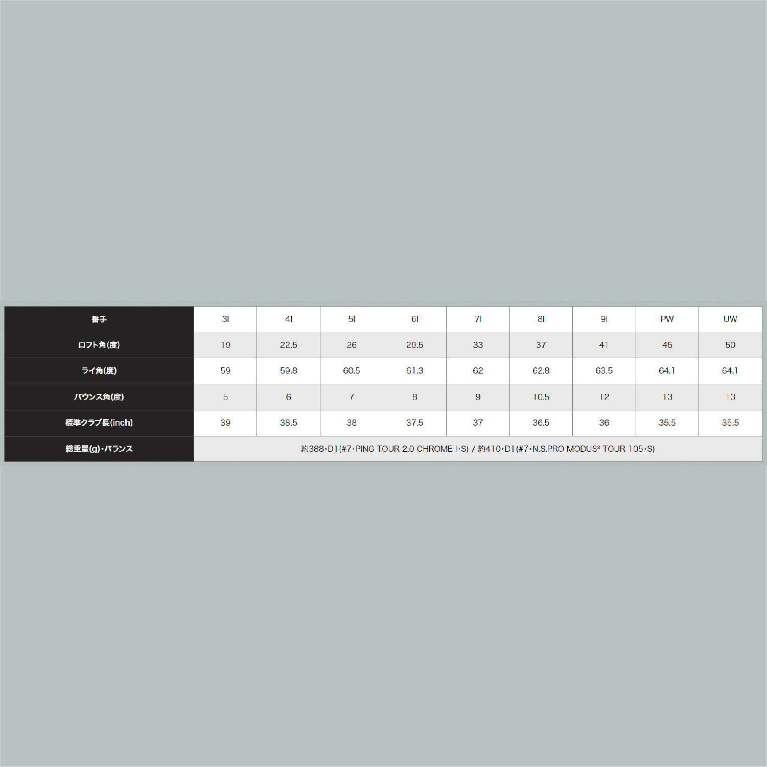 ・番手:3I、4I、5I、6I、7I、8I、9I、PW、UW